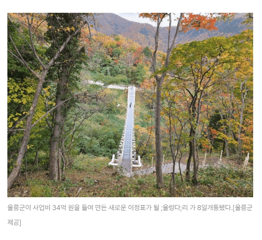 울릉도에 울렁다리가 11월 10일 개통했습니다. “섬에서 마음이 울렁인다”는 이름으로 탄생한 울렁다리는 단순히 ‘출렁다리’라는 별칭만으로는 담아내기 어려운 이야기들이 숨어 있습니다. 길이 94.6 m, 폭 1.5 m, 지상에서의 높이 16 m라는 스펙으로, 섬이라는 공간이 가진 ‘하늘·바다·절벽’ 삼박자를 하나로 잇는 새로운 보행 인프라입니다. 이 다리는 기존의 흔들다리 개념과는 달리, 분리정착식 당사공법과 이중 새그(Sag) 구조를 적용해 흔들림을 최소화했으며 최대 550명까지 동시에 이용할 수 있는 견고함을 갖췄습니다. 한마디로, 스릴과 안정감이 공존하는 ‘섬 위 하늘길’이자, 자연 풍경을 걸으면서 즐기는 새로운 형태의 여행 경험입니다.
